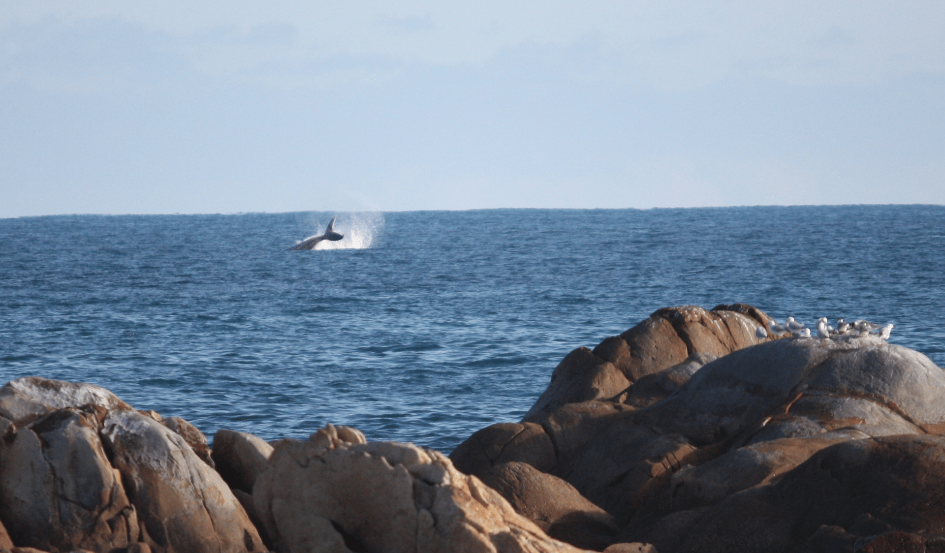 Three friends walk along the waters edge near Sperm Whale Head
