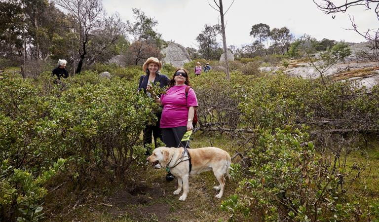 There are two designated disabled parking bays halfway down the parking area. Each bay is 3.8 metres wide with a curb cut onto the footpath. From the disabled parking bays, a 90-metre path with a 1:50 gradient leads to the observation area. The observation area is level with supportive bench seating. There is also an easy to read information board.