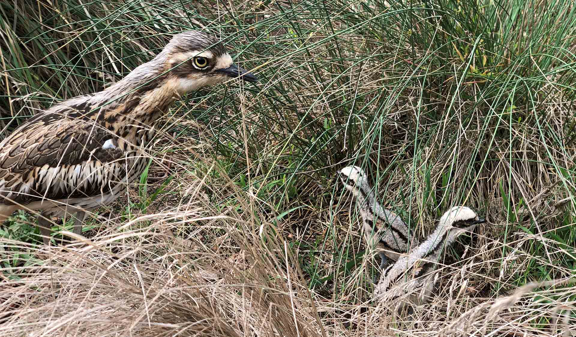 Three Bush-stone Curlew chicks were recently born at Serendip Sanctuary near Geelong, the first new arrivals at the sanctuary since 2018.