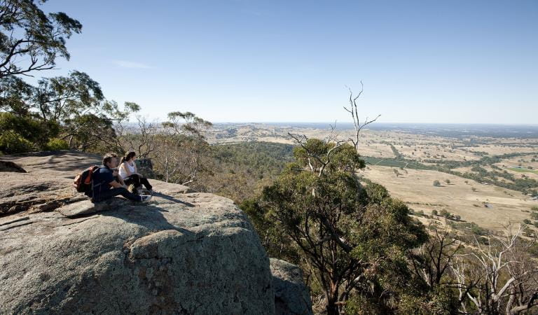 A 20-minute drive from Castlemaine, near the town of Harcourt, you’ll find Mount Alexander Regional Park. Walk the four-kilometre West Ridge walking track, which links the major lookouts and points of interest within the park.