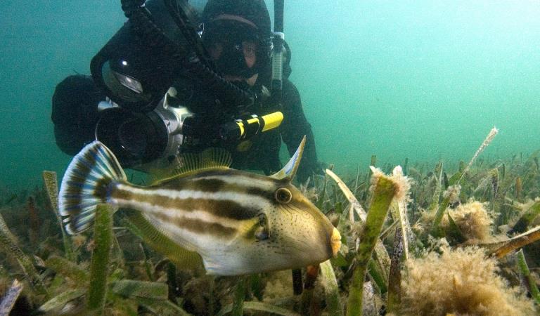 Under the water within Corner Inlet Marine National Park, there are unique opportunities for safe, boat-based diving and snorkelling. The shallow seagrass meadows hide a rich diversity of marine life undisturbed by frequent diving. Corner Inlet is the only place in Victoria where the Broad-leaved seagrass (Posidonia australis) forms large meadows. Growing up to a metre in length, this seagrass is one of the world's tallest. The seagrass meadows offer the underwater photographer many new and interesting subjects for macro-photography, which cannot be encountered elsewhere in Victoria. Divers can expect to see a variety of large fish including Banjo Sharks, leatherjackets, flathead and Grass Whiting cruising the seagrass meadows. Closer inspection of the seagrass will reveal many cryptic species such as seahorses, pipefish, miniature squids and numerous crustaceans.