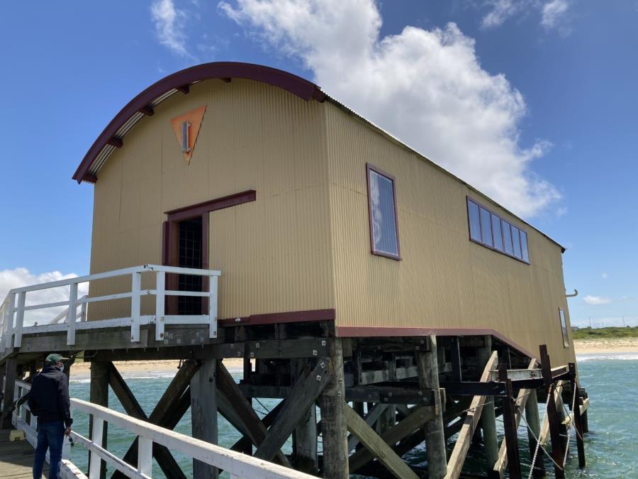 The revitalised Waiting Shed provides renewed capacity to support future opportunities for community use and consideration of appropriate uses, while also continuing to provide a welcome shelter for anglers and visitors to the pier during inclement weather. Although extensive work has been done to the Lifeboat Shed substructure and exterior, the shed interior has a sloping floor and is not safe for unsupervised public access until further work is done, and it remains closed to the public, as it was prior to this work.